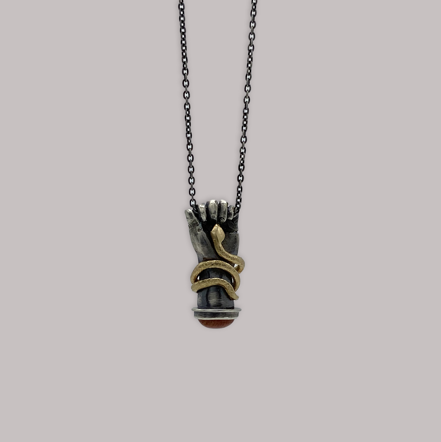 We need to stand together and fight for one another not against one another Hand sculpted in wax and cast is silver. Set with red jasper to promote strength, grounding and protection.